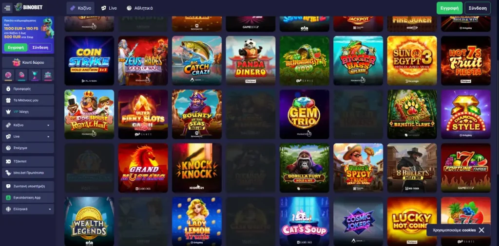 Επιλογή παιχνιδιών στο καζίνο Binobet