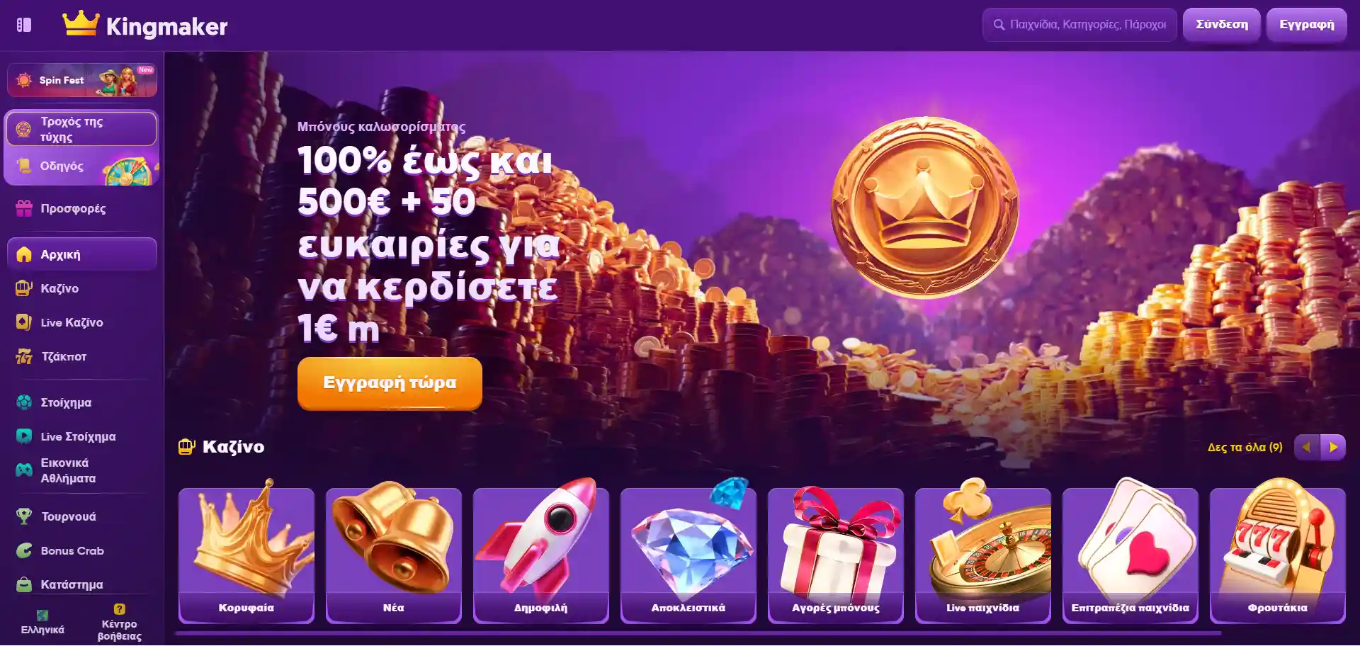 Επιλογή παιχνιδιών Kingmaker casino gr